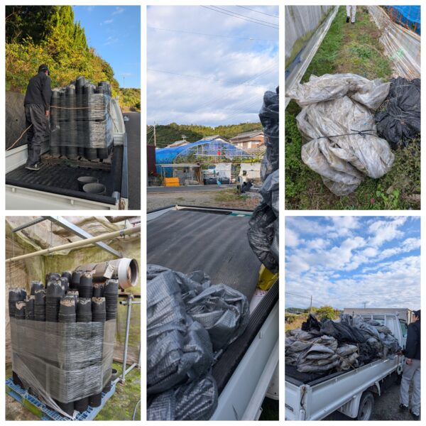 今日は朝から晴れ。気温は7 °c。今日は早朝からガーベラの出荷をし、母親は40年もの温室のサンディーの L を切り、私と農園主で、来年エフクリーン温室で使う鉢を運びました。夏に洗って、海上コンテナに置いていました。トラックに乗せてエフクリーン温室の入り口まで運び、2人で行ったり来たりしながら運びました。それから日置川清掃さんに苗トレーや肥料袋、遮光のふあふあと、父親がパイプハウスの横に適当にまとめていたビニールを捨てに行きました。この父親のビニールが、水を含んでいる+土にまみれている+重い+防油堤が邪魔で持ち上げないと車にたどり着けない、という4重苦を抱えていました。私は無視したかったのですが、農園主は捨てたいみたいでした。仕方なく、2人で引っ張りまくって、どうにか車に乗せることが出来ました!かなり疲れました、、、