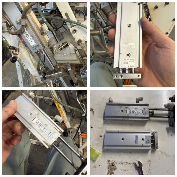 午後からは少し昼寝をして、農園主と母親でエフクリーン温室のLを切って、母親がLのキャップをしました。農園主は、一昨日から調子の悪かったキャップマシーン4号機のシリンダーを取り替えました。シリンダーって何なのか知りませんが、かなりエアーが漏れている音がしていました。⇓