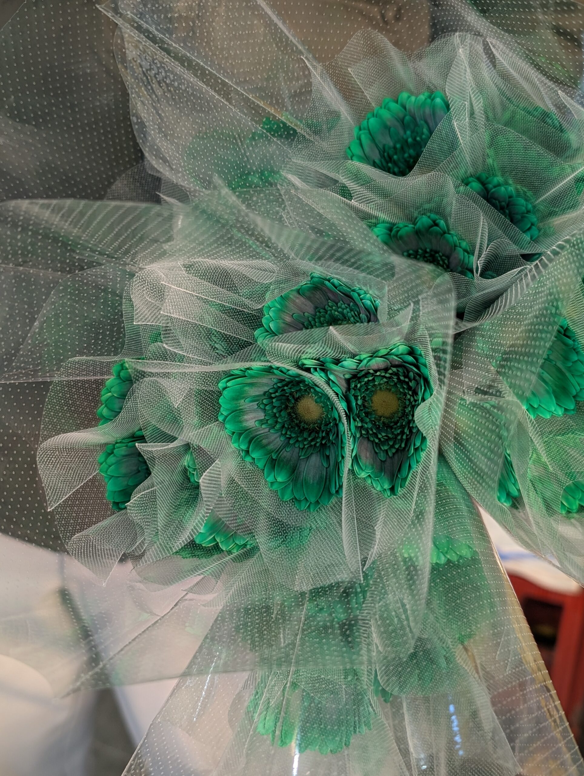 今日は朝から晴れ。気温は1℃。今日も朝からガーベラの採花と調整作業をしました。エフクリーン温室と新しいガラス温室を切って、今日も農園主が調整作業に参加したので、10時過ぎによってってさん用のパックまで終わってしまいました。今日はグリーンの染めガーベラも作ってみましたが、こんなん売れるんかい?みたいな感じになってしまいました。⇓