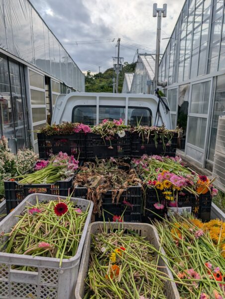 午後からは母親がよってってさんにガーベラを持って行き、農園主が1週間分のガーベラのゴミを山に捨てに行きました。
