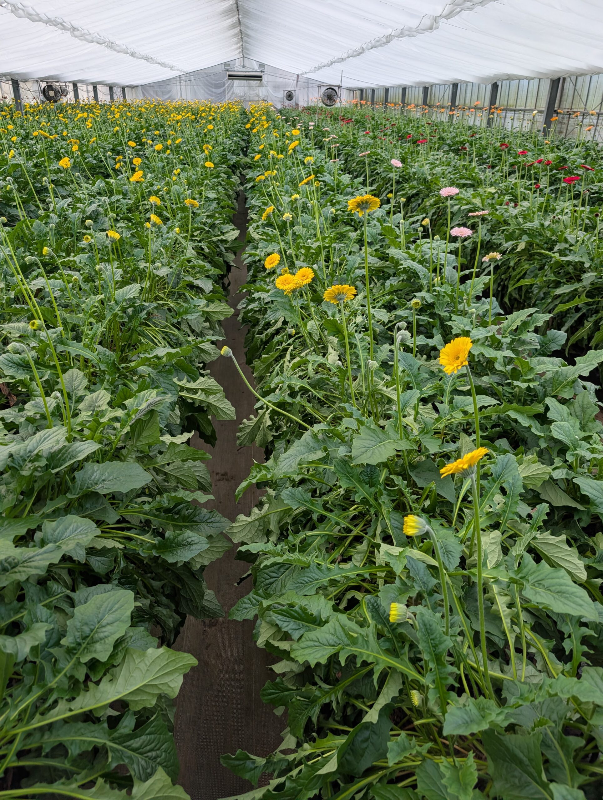 今日は朝から晴れ。気温は13 °c。今日も朝からガーベラの採花と調整作業をしました。エフクリーン温室から切り始め、この温室の花が一番咲いているような気がしました。ずっとちんちくりんだった。スパイダーバンブーの茎も伸びてきて、ダブルテムが丸軸になりました。ハデスはまだ少しダブルステムがあります。新しいガラス温室も切って、今日も花が少なく、よってってさん用のパックまで10時半に終わってしまいました。仕事が少なすぎるので、実習生たちにエフクリーン温室の葉かき作業をしてもらいました。農園主は花を切ってから、新しいガラス温室で、昨日の薬散の続きをしました。