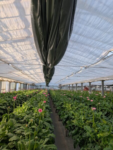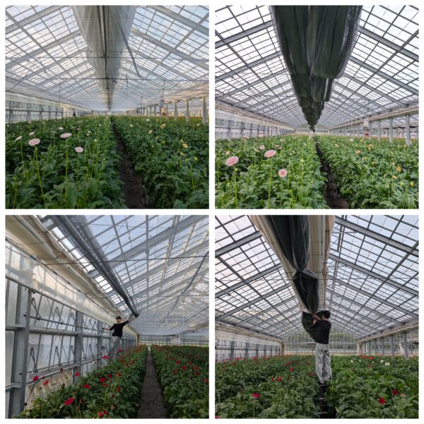 今日は朝から晴れ。気温は19 °c。今日も朝からガーベラの採花と調整作業をしました。ライトアップして、エフクリーン温室から切り始めました。株は大きくなったのですが、花は少ないです。新しいガラス温室も花が少なめ、、、なので、今日も午前中によってってさん用のパックまで終わってしまいました。農園主は花を切ってから新しいガラス温室の薬散をしました。昨日、1番西側のアリエルにもコナジラミを見つけました。毎週薬散していますが、今年のコナジラミもなかなかしつこいです。