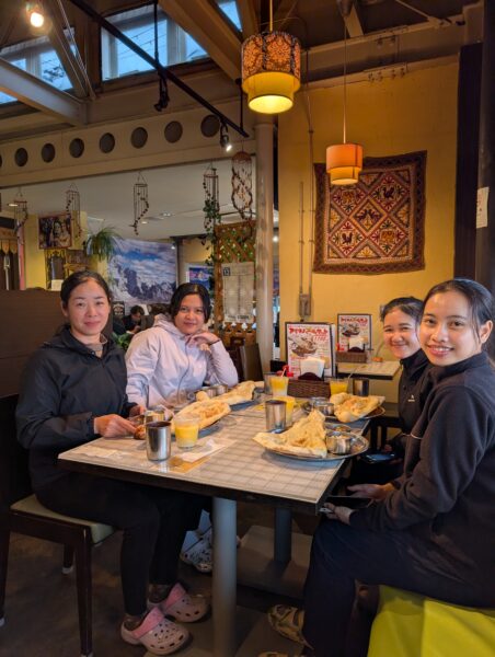 今日は朝から雨気温は12 °c。今日は早朝からガーベラの出荷をし、それから最後の高値が期待できる出荷日だったので、今日もいつものように採花と調整作業をしました。私と農園主で昨日切ったエフクリーン温室を切り、実習生と母親はパイプハウスを切りました。そして、新しいガラス温室で、長くて切りやすい花を切って、みんなで調整作業をしました。今日切った花は、そのまま箱詰めして出荷しました。出荷本数は26000本強。この日のために、前回の出荷までは咲き過ぎないよう、少なめに切っていました。なかなか上手く切ったなぁ〜。出荷が終わってから、みんなでアリマハールにカレーを食べに行きました。インドネシア人たちは中辛のカレーも普通に甘いと言って、スパイスをふりかけて激辛にして食べていました。どんな舌してんだ?チーム日本人は、甘口でも辛く感じたよ。