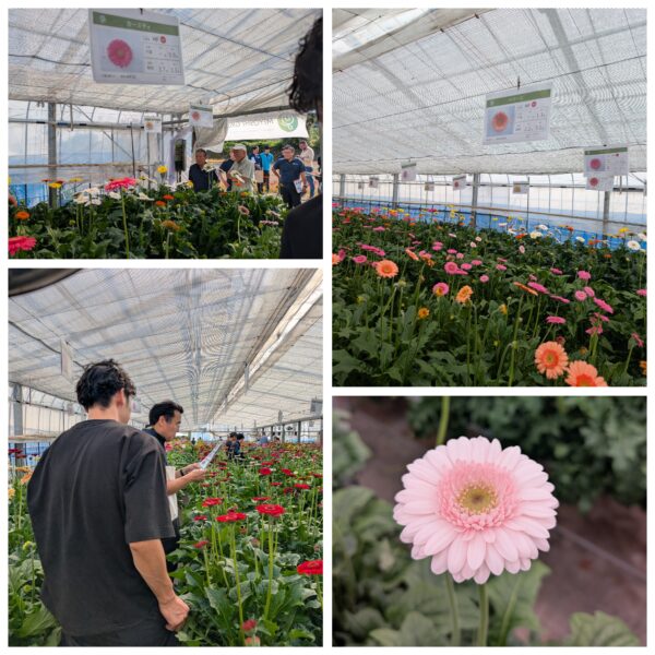 今年もミヨシさんの圃場から見学しました。去年新発売だったのに、今年もう生産中止になってしまった品種が結構あって驚きました。しかも一番のお気に入りのイギーも本当に生産中止だと聞いて、ショックを受けました。担当者さんにもう1度販売してほしいと懇願してきました。農園主は、ベリーニとパスティーニコルバーラやスプリッツ?が気になったみたいです。今年も茎がしっかりしていて、素晴らしい作りでした☆